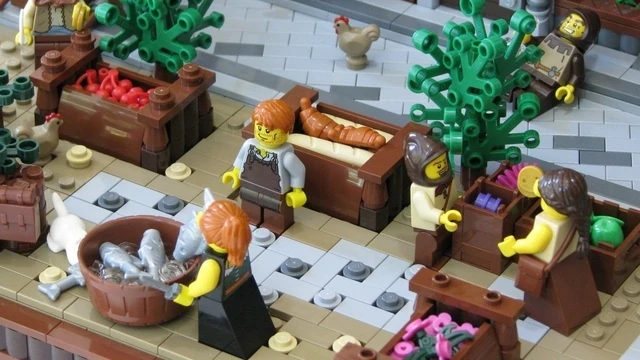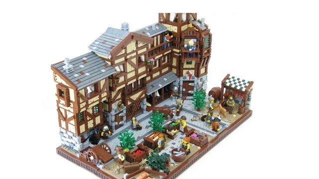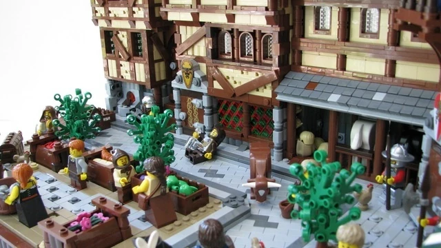Medieval Market Street is a project on LEGO CUUSOO created by AlexP on June 14th, 2012. The project depicts a typical medieval market, with a blacksmith, pub, stables, a sheriff office, and civilians on the streets. The project was made in incredible detail using advanced building techniques. It is a scene from his popular story The Rise of the Mage that he posted on Mocpages.