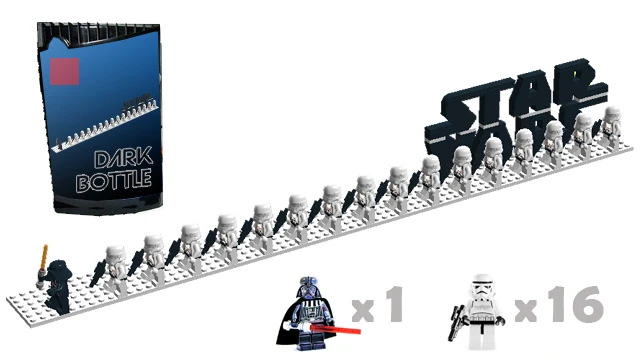 The project originally aimed to allow builders to build and display/play with 99 Storm Troopers and one Darth Vader figure (characters from the Star Wars series). Eventually, the project evolved to have different types of the Storm Trooper. Then, due to reasons stated below, the project yet again evolved into the Dark Bottle.